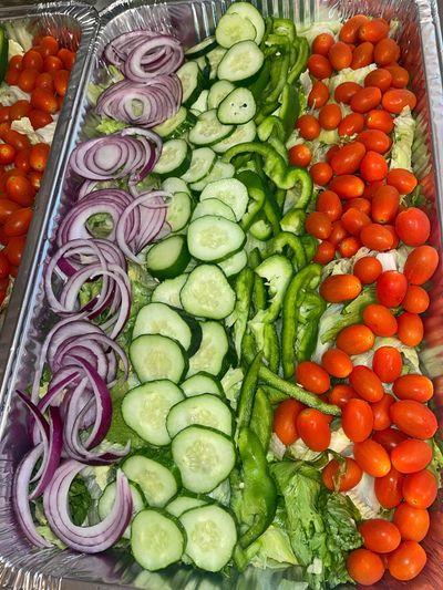 •Italian w/ tomatoes, onions, pepperoncini peppers, black olives & croutons ($65 per pan)